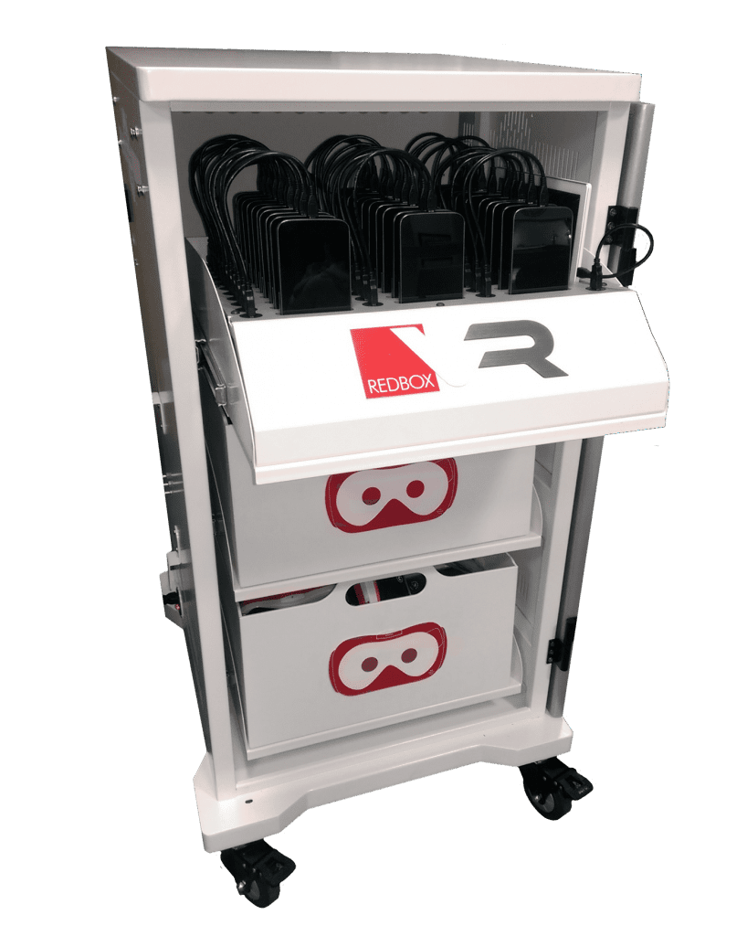 The RedboxVR 15 Student Classroom Kit houses 15 Student Devices and 1 Teaching Device with intelligent charging and integrated router plus storage for 15 VR Viewers. This all-in-one Expedition kit doesn’t need an internet connection and requires just one 110v-240v power supply,