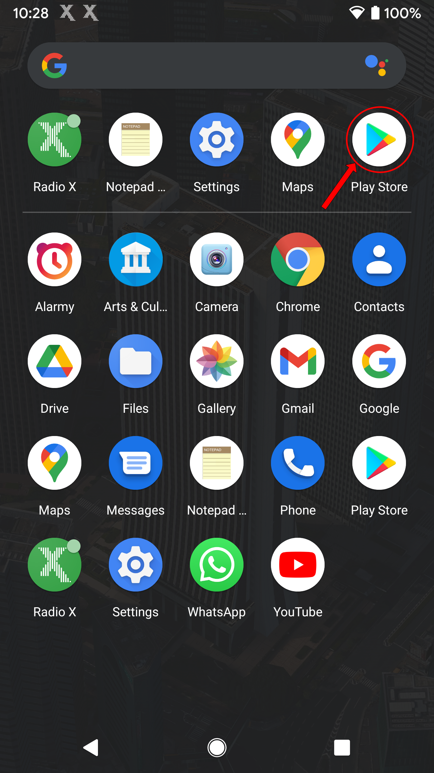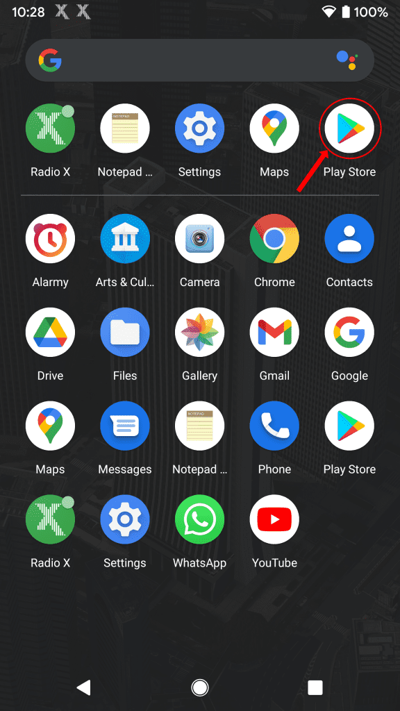 First, power on your Android device. Then navigate to and open the Google Play Store app.