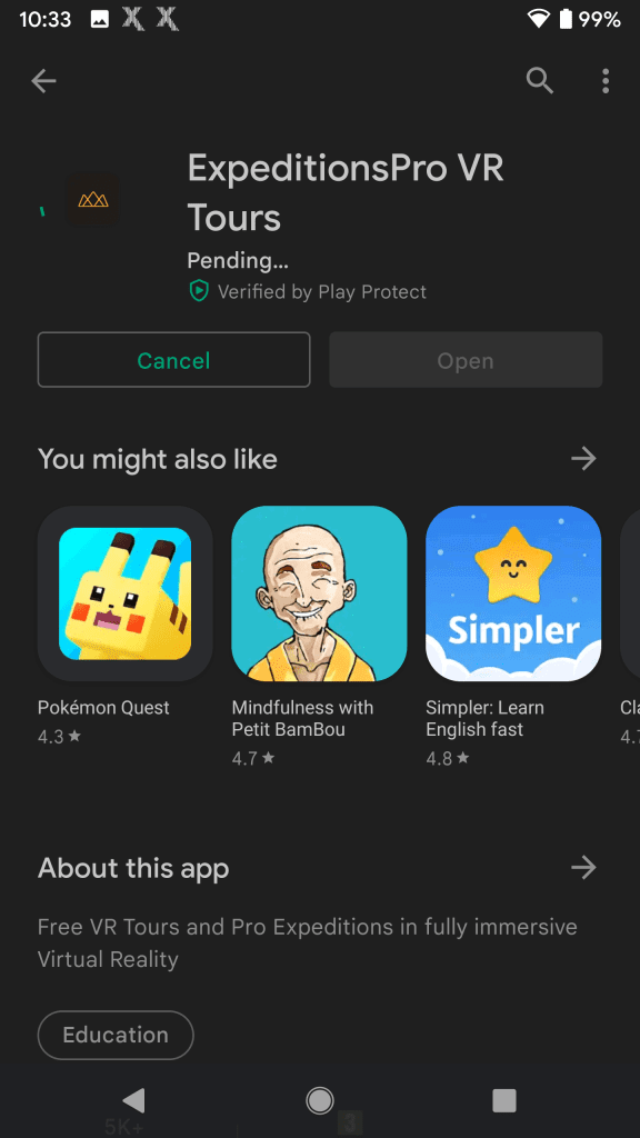 Search for ExpeditionsPro. The app’s full name is ‘ExpeditionsPro VR Tours’.