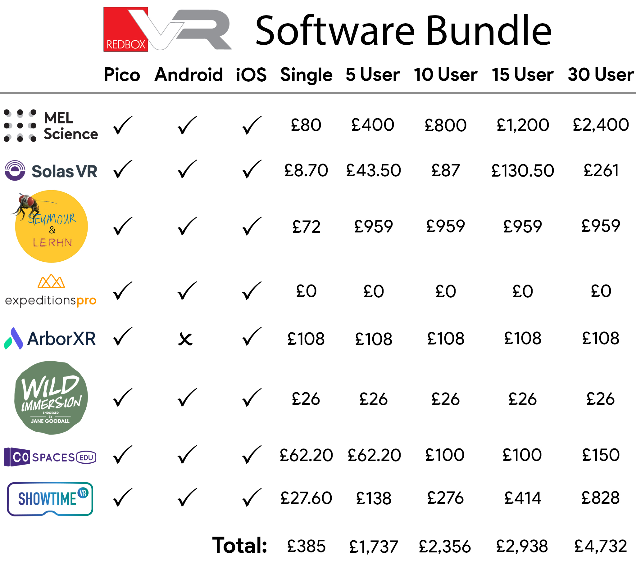 We offer a software package for people who already own multiple virtual reality headsets. The bundle includes: