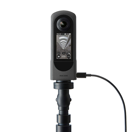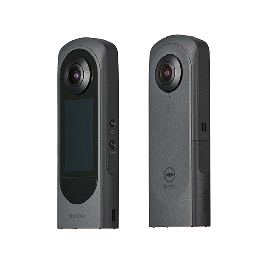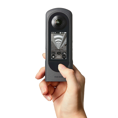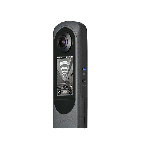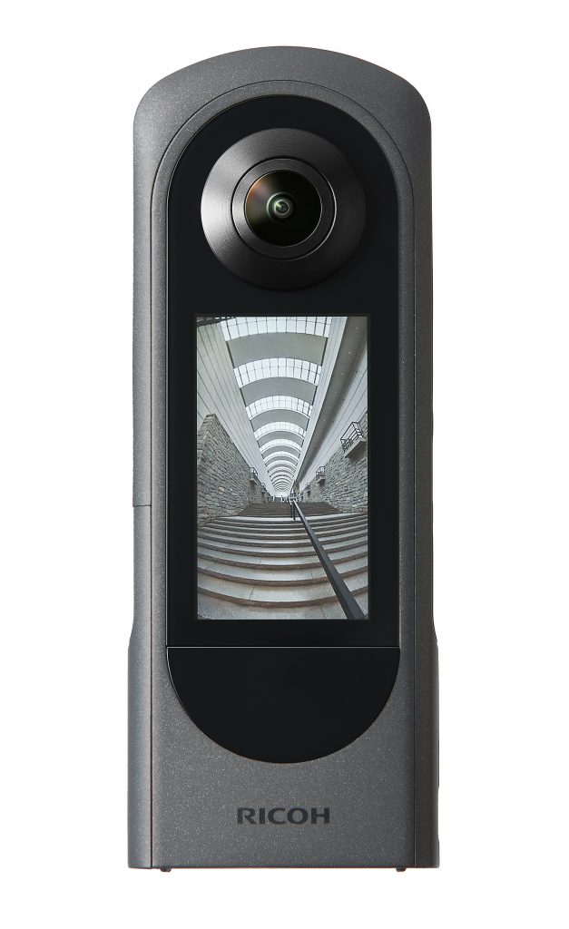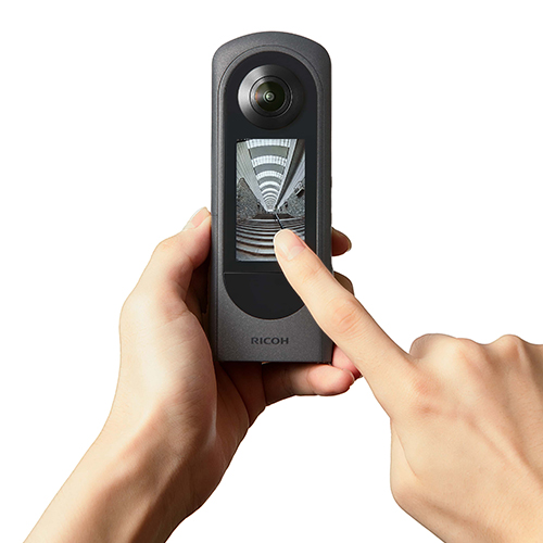 In a first for the Ricoh THETA series, the new model is equipped with a large 2.25-inch full-colour touch screen display. This helps to improve operability during standalone camera use. Also a first for the THETA series, the new model also supports use of an interchangeable battery and an external memory card for more efficient and reliable shooting in a business setting.