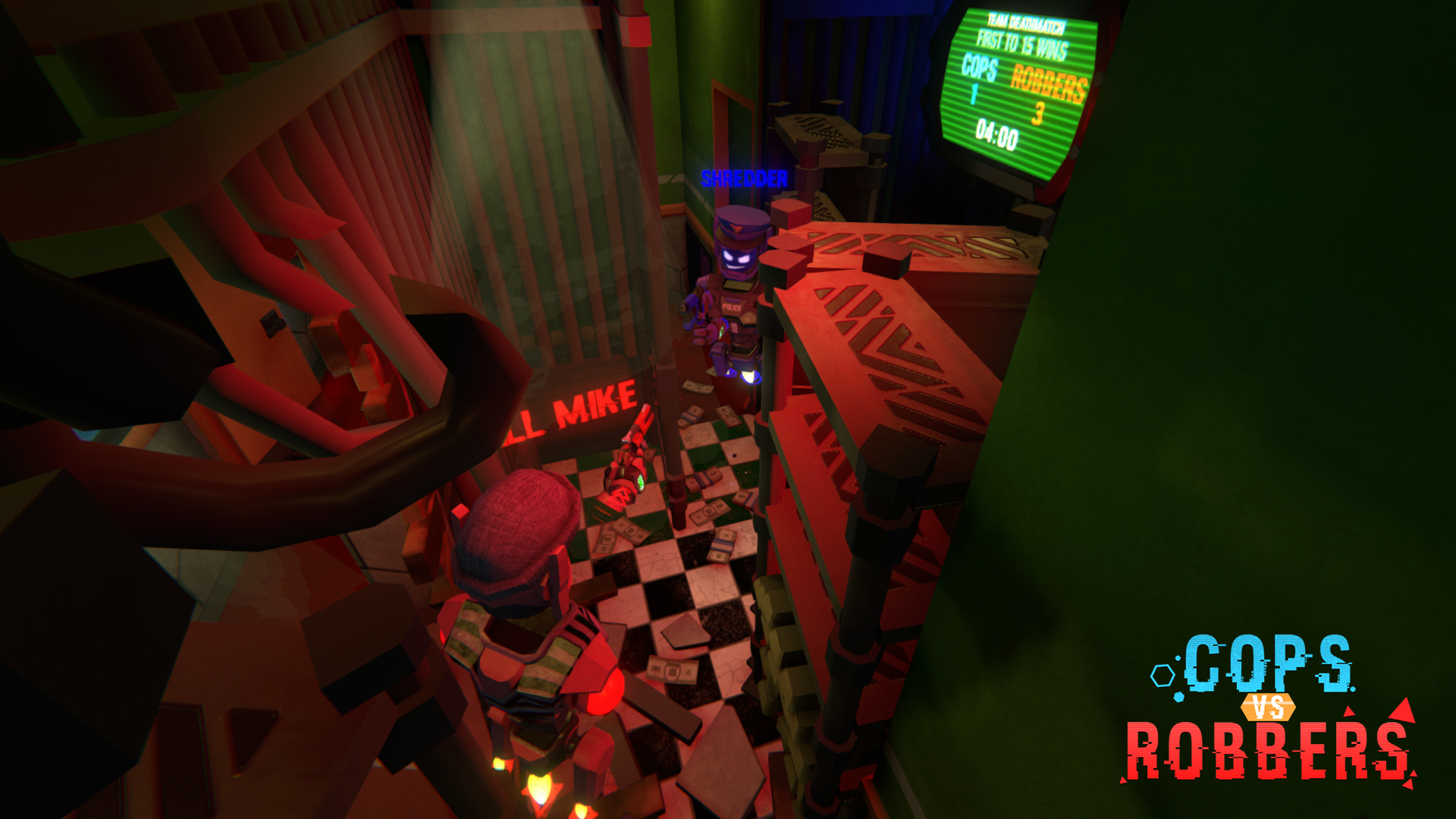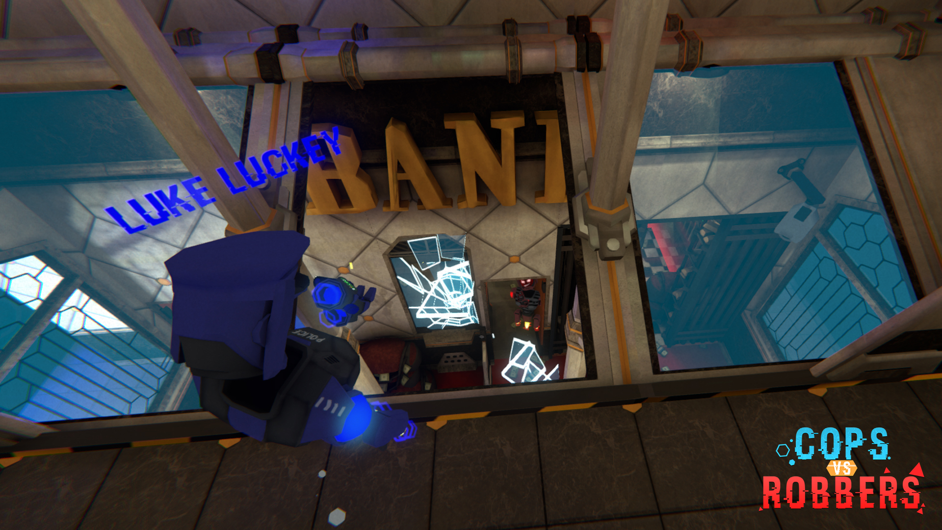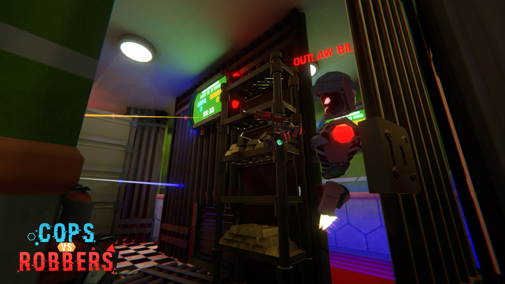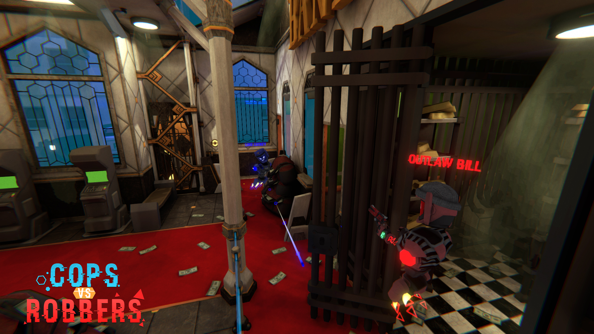 The vault has been broken open, a robbery is on it’s way. Join the fray as either Cop or a Robber and shoot it out on the inside of a bank. Have a firefight with full freedom of movement in this location based VR shooter.