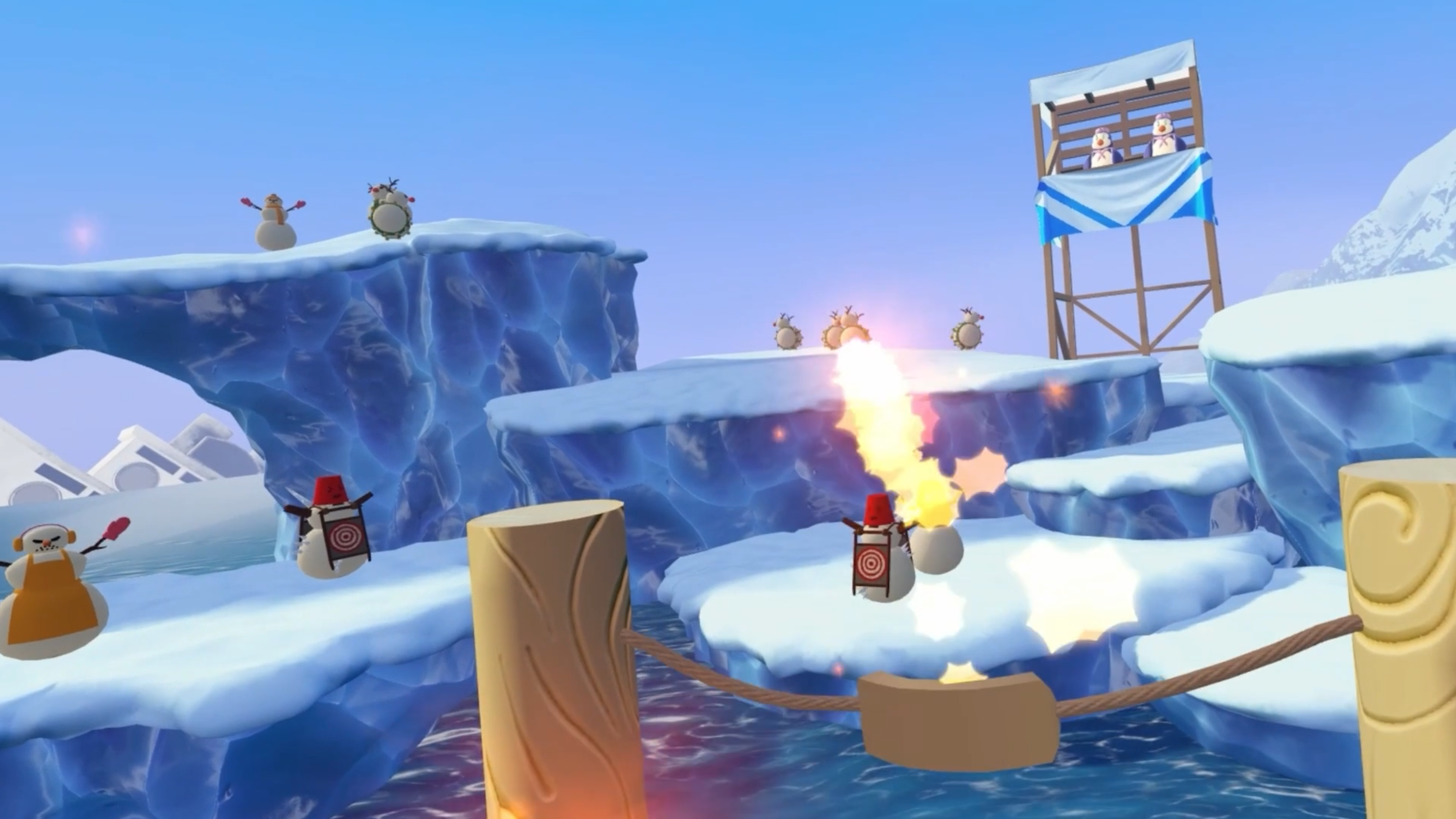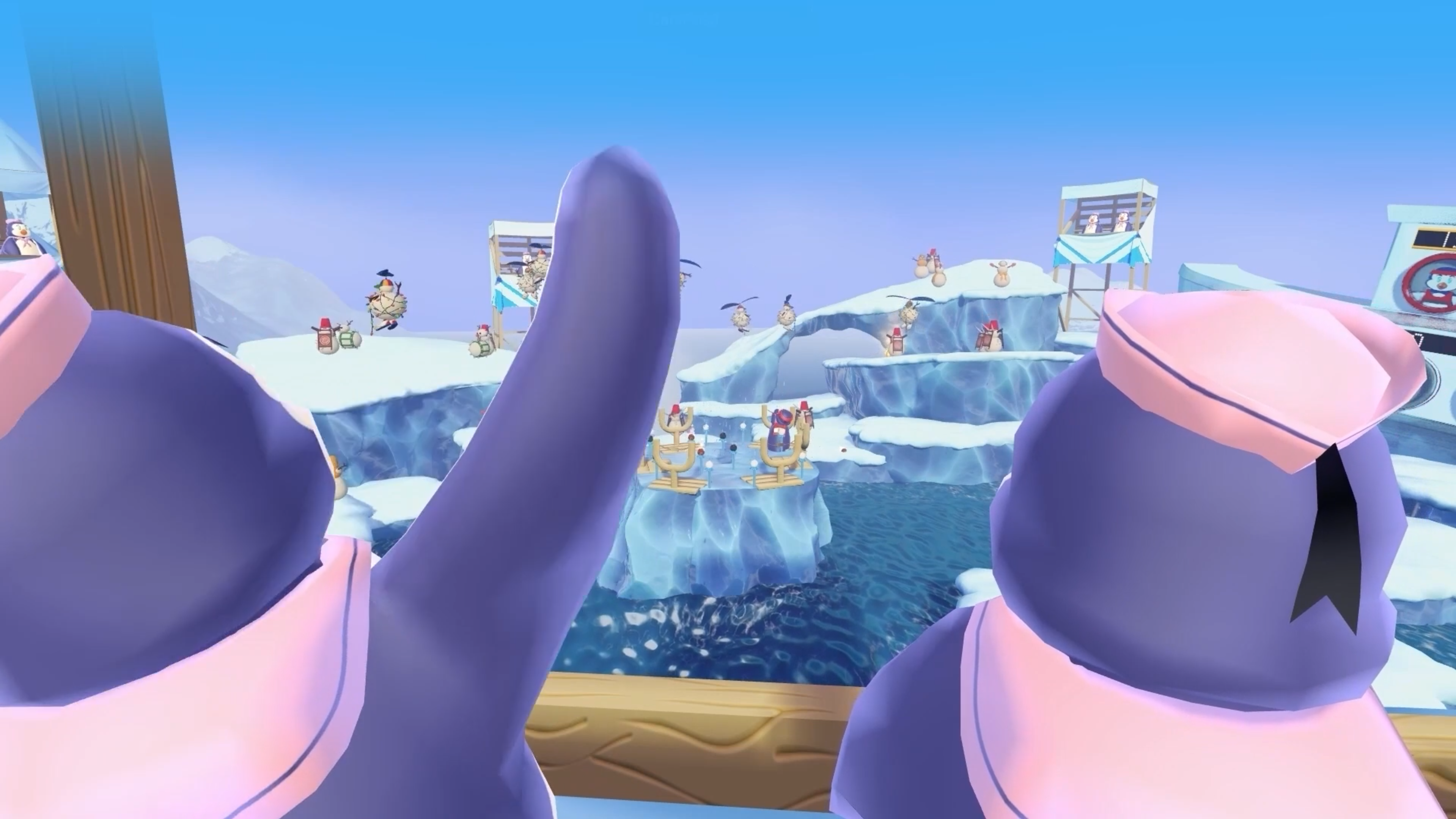 Prepare for an epic VR experience with Arctic Olympics – a captivating competition set in the icy Arctic! Enter the Slingshot Challenge, where you’ll stand on an ice floe and aim your snowball launcher at moving targets all around you. Enjoy the freedom of movement in this free-roaming VR game, enhanced by exciting power-ups that ramp up your points.